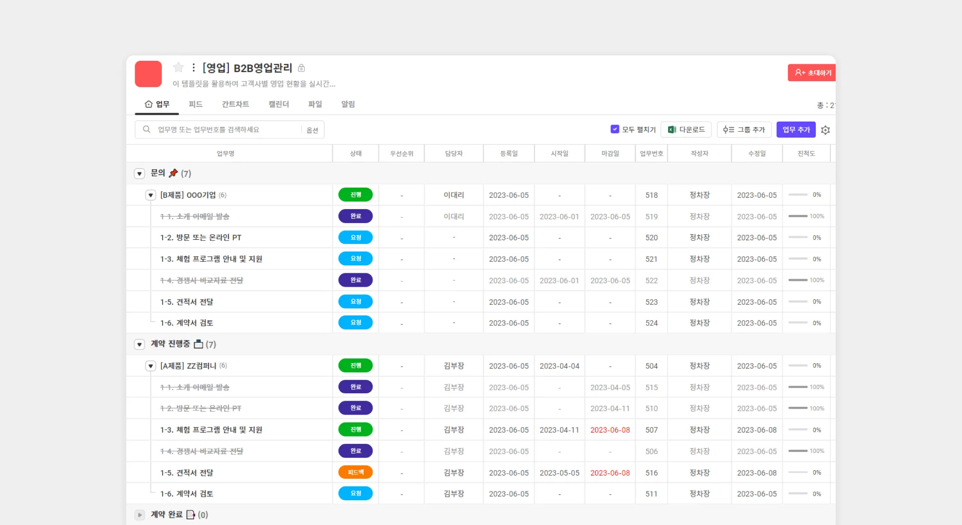 영업팀에서 담당하는 고객사를 한 공간에서 관리할 수 있는 프로젝트 템플릿입니다.